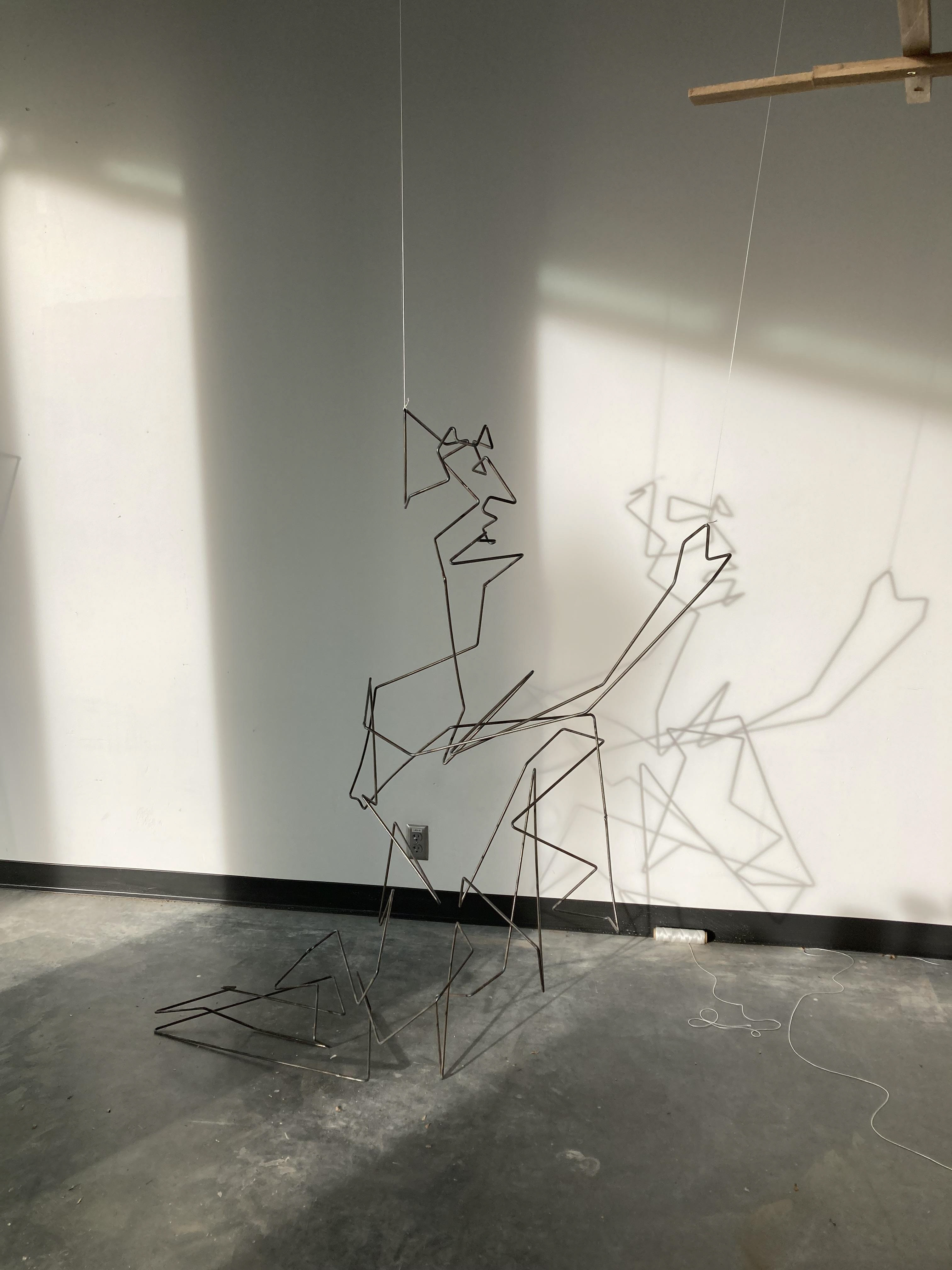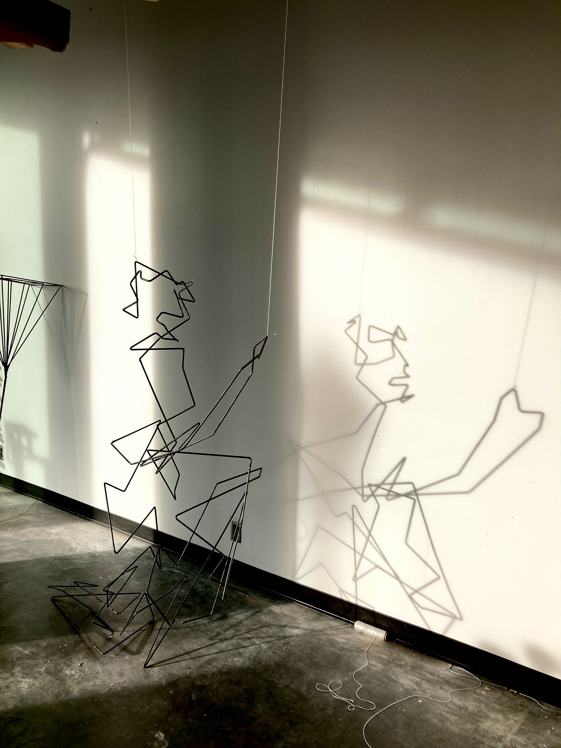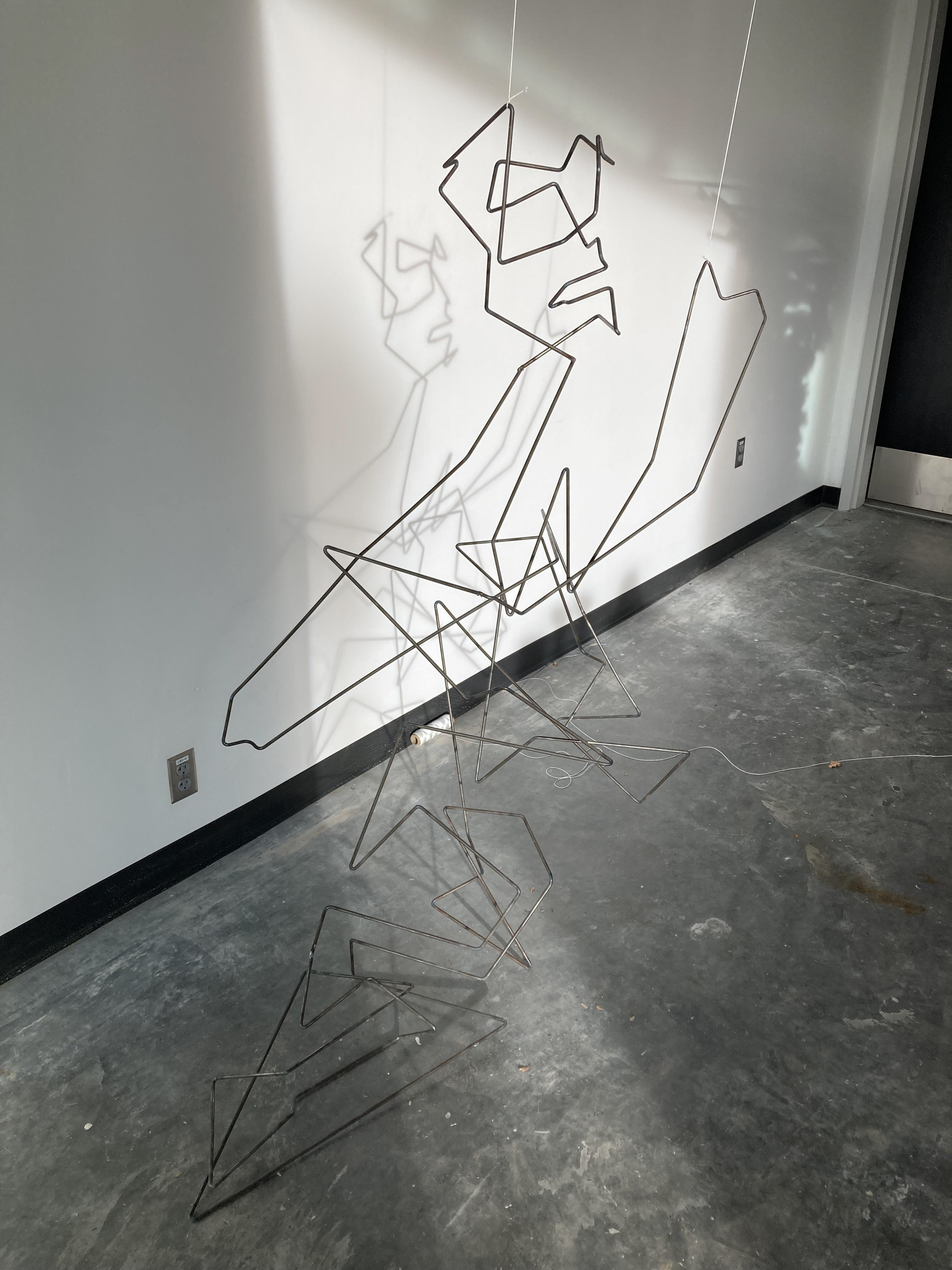 Steel rod sulptures born from meditations on darkness and light, disembodiment and structure, hope and yearning.